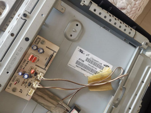 解決方案:可能是受潮的原因,導(dǎo)致屏線漏電。拆機(jī)檢測屏電路是否通暢,用屏線路連接邏輯板,用手觸摸邏輯板.上的芯片,看看圖像是否發(fā)生變化