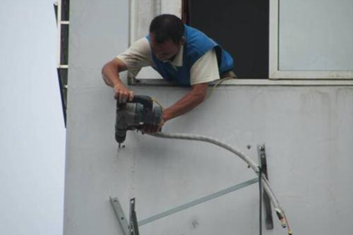有的小區(qū)里,會在每戶人家的外面安裝好放置空調(diào)外機(jī)的支架,有的小區(qū)里則沒有。如果沒有空調(diào)外機(jī)支架的話,那么安裝師傅需要先在室外安裝好空調(diào)的外機(jī)支架。安裝支架時,一定要注意人員的安全,如果居住樓層在三層以上,一定要讓施工人員系好安全繩。