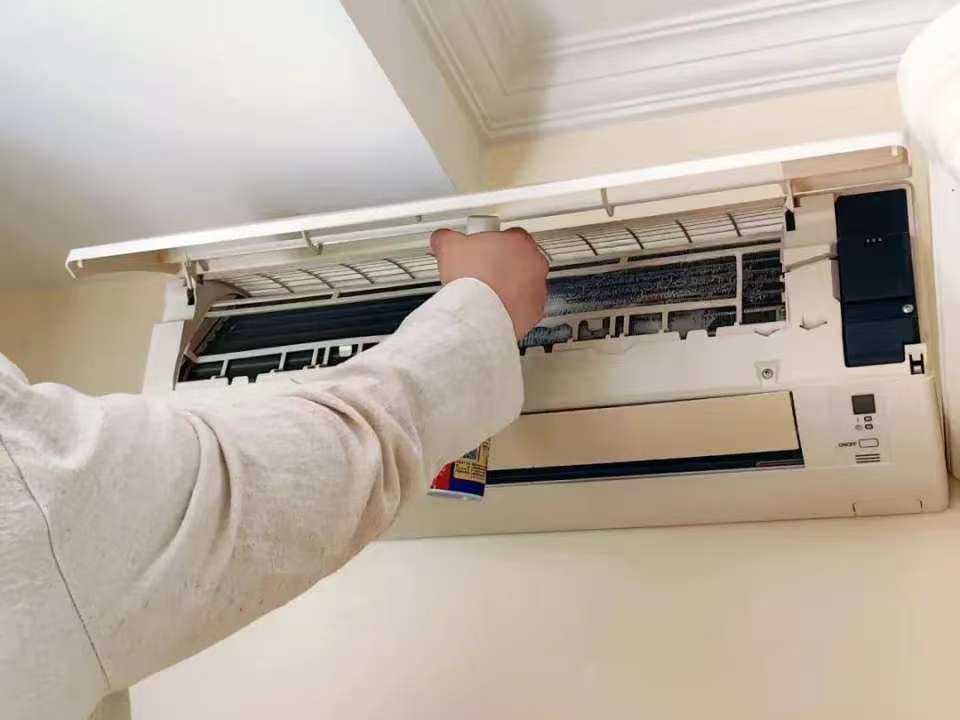 拆卸部件:小心拆卸空調(diào)的過濾網(wǎng)、外殼、導(dǎo)風(fēng)板等可拆卸部件,放置在安全區(qū)域。